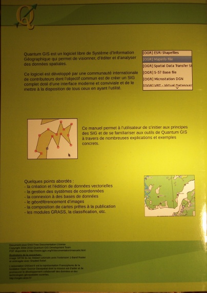 Lors de la traduction du manuel utilisateur il y a … un peu plus d’un an déjà, j’avais dans l’idée de proposer ce manuel en version papier via un site d’édition à la demande. Suite à la publication du rapport annuel de l’OSGeo Tytler Mitchell a permis l’impression de ce rapport au format papier via le site lulu.com.