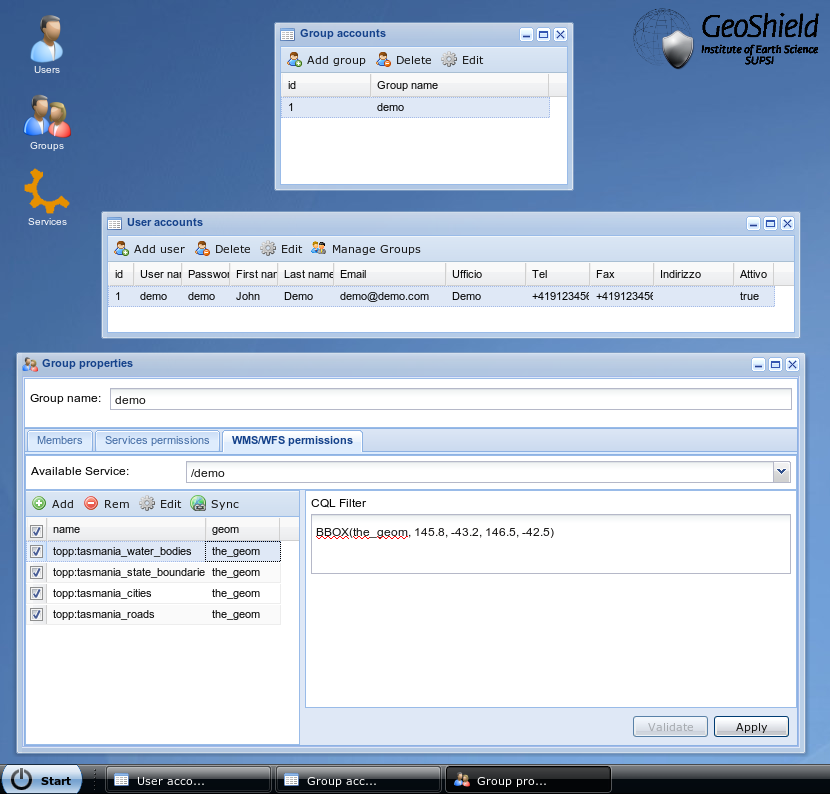 - l’impossibilité d’utiliser GeoShield et GeoServer sur le même port. Cela complique l’installation pour rien même si une contrainte technique peut se cacher derrière cela.