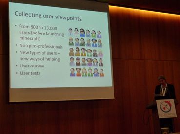 « La carte du Danemark à l’échelle 1:1 dans Minecraft nous a amené une nouvelle audience (10 800 utilisateurs) » [si vous ne savez pas ce qu’est Minecraft, vous devez avoir plus de 25 ans ou pas d’enfants de moins de 20 ans]; « nous cherchons des citoyens normaux » (look for normal citizens) »; « cette carte Minecraft a été utilisée pour de l’urbanisme et de l’action citoyenne » [NB : un agent de l’Ordnance Survey a lancé la mode tout seul avec ses petits doigts).