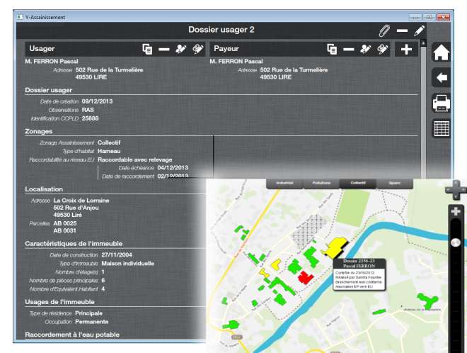 La société a paramétré son logiciel pour que ses clients consomment les flux existants. Ils affichent les fonds cadastraux ou les photographies aériennes en fond de plan. L’utilisateur peut localiser rapidement une parcelle par un service WFS, ce qui constitue un gain de temps appréciable. Il géolocalise ainsi le dossier d’assainissement. Il peut enfin tracer le schéma précis de l’installation.