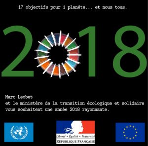 De même qu’INSPIRE devient de plus en plus invisible en devenant de plus en plus utile, comme c’est le rôle normal d’une infrastructure, les enjeux internationaux et européens deviennent encore plus cruciaux : c’est ce que j’ai voulu partager avec vous dans cette carte de voeux qui met en avant les 17 objectifs du développement durable de l’ONU.